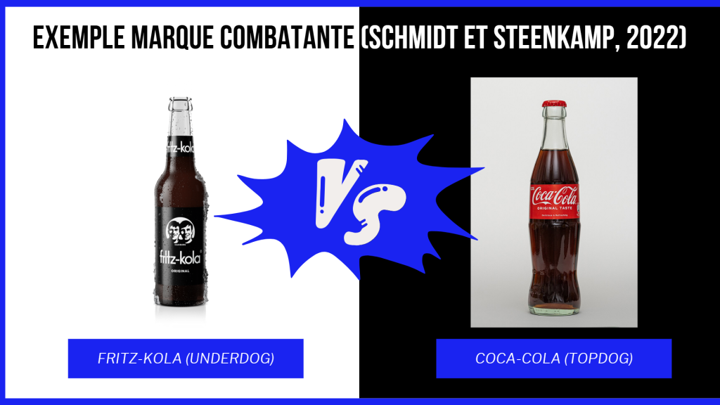 Il est toutefois important de bien comprendre qu’une entreprise n’a pas besoin d’être au bord de la faillite pour se positionner comme étant une combattante. En fait, c’est dans le différentiel de puissance par rapport à la firme hégémonique tel que présenté par la marque au niveau de son identité et que perçu par les clients au niveau de son image qui permet de créer ce positionnement archétypal. Par exemple, selon Schmidt et Steenkamp (2022), la marque allemande de soda Fritz-Kola peut être considérée comme un underdog par rapport au géant américain Coca-Cola.